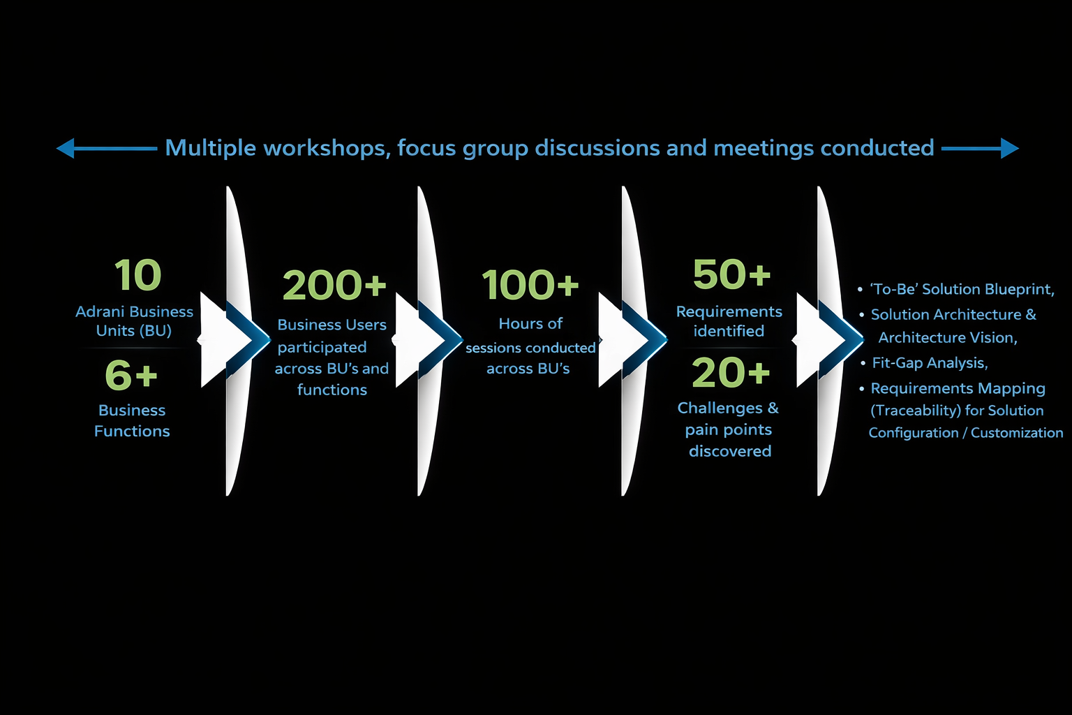 Through in-depth analysis, BWC gained a comprehensive understanding of the client’s existing project management processes. This involved conducting over 100 hours of workshops, focus groups, and meetings across 10+ business units and 6 business functions. Over 200 business users participated, enabling BWC to identify over 50 key requirements and pinpoint more than 20 pain points hindering project efficiency.